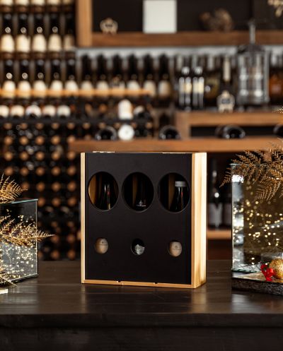 Wood box for 3 bottles. Match the gift box with your favourite product, put in the cart the package with your best-loved wine. Due to bottle...